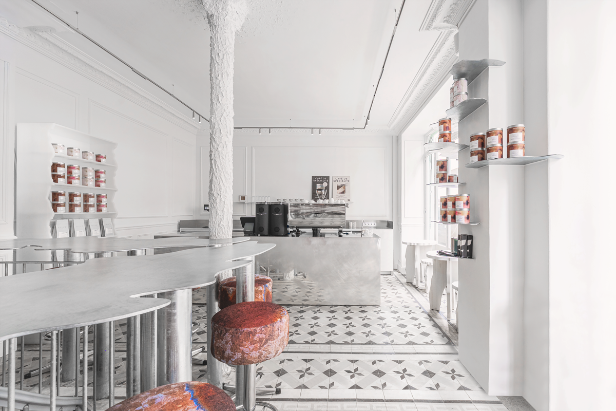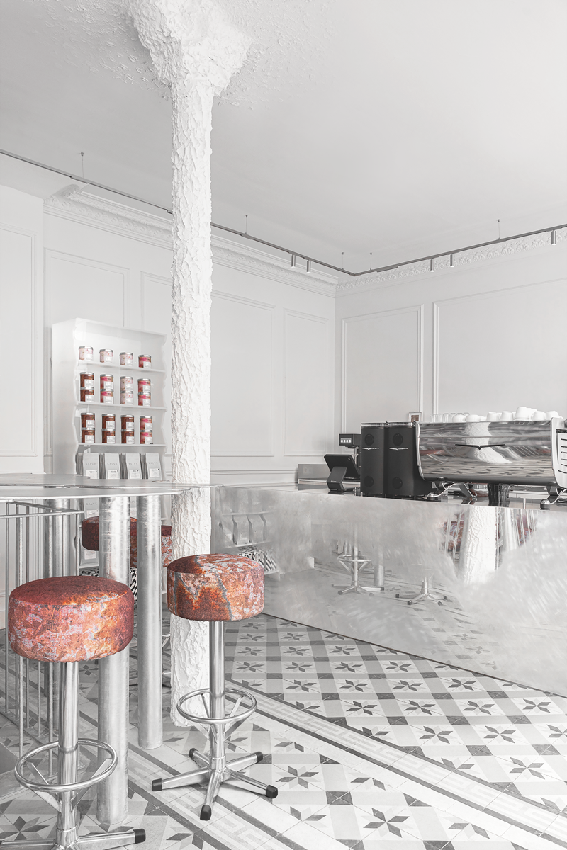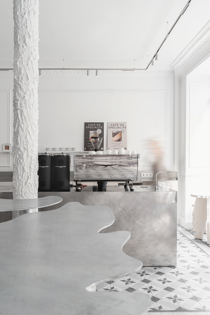 All metal components within the space were fabricated according to the designers’ drawings, in collaboration with metal artist Edgars Spridzāns, emphasizing craftsmanship, process, and material honesty. Metal is neither concealed nor idealized; visible traces of fabrication become a conscious part of the design language.