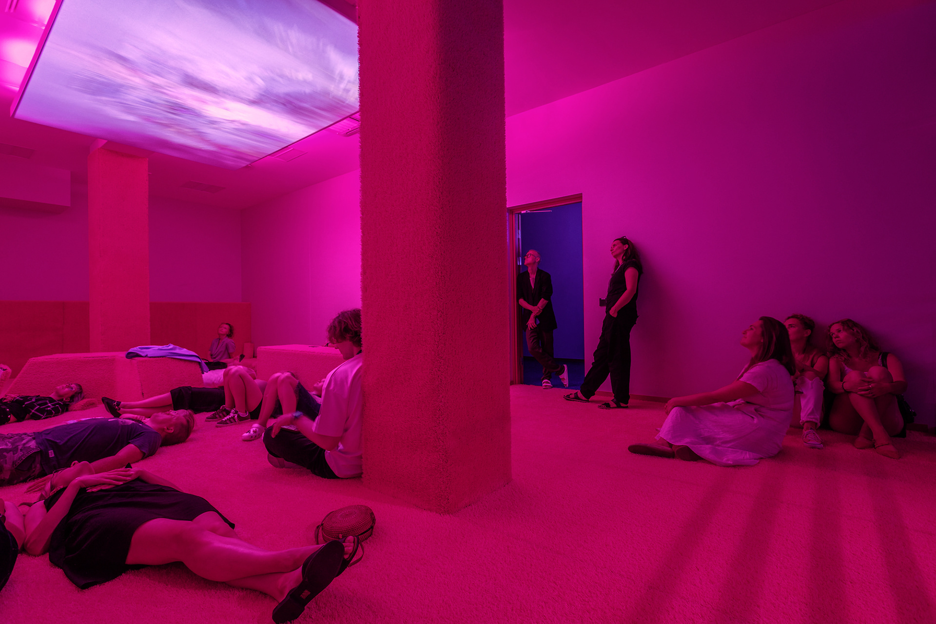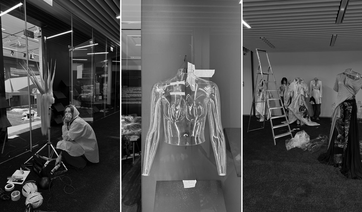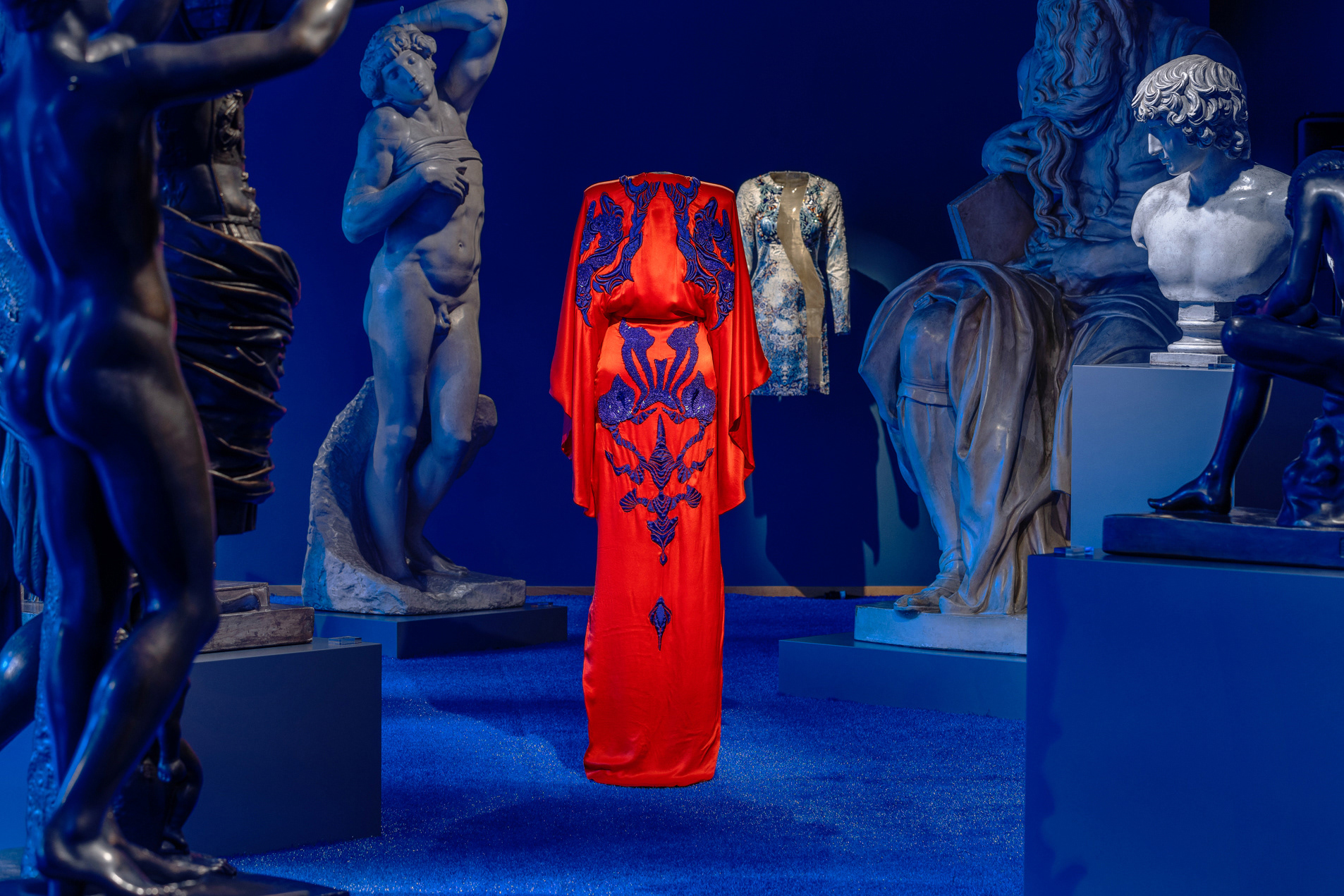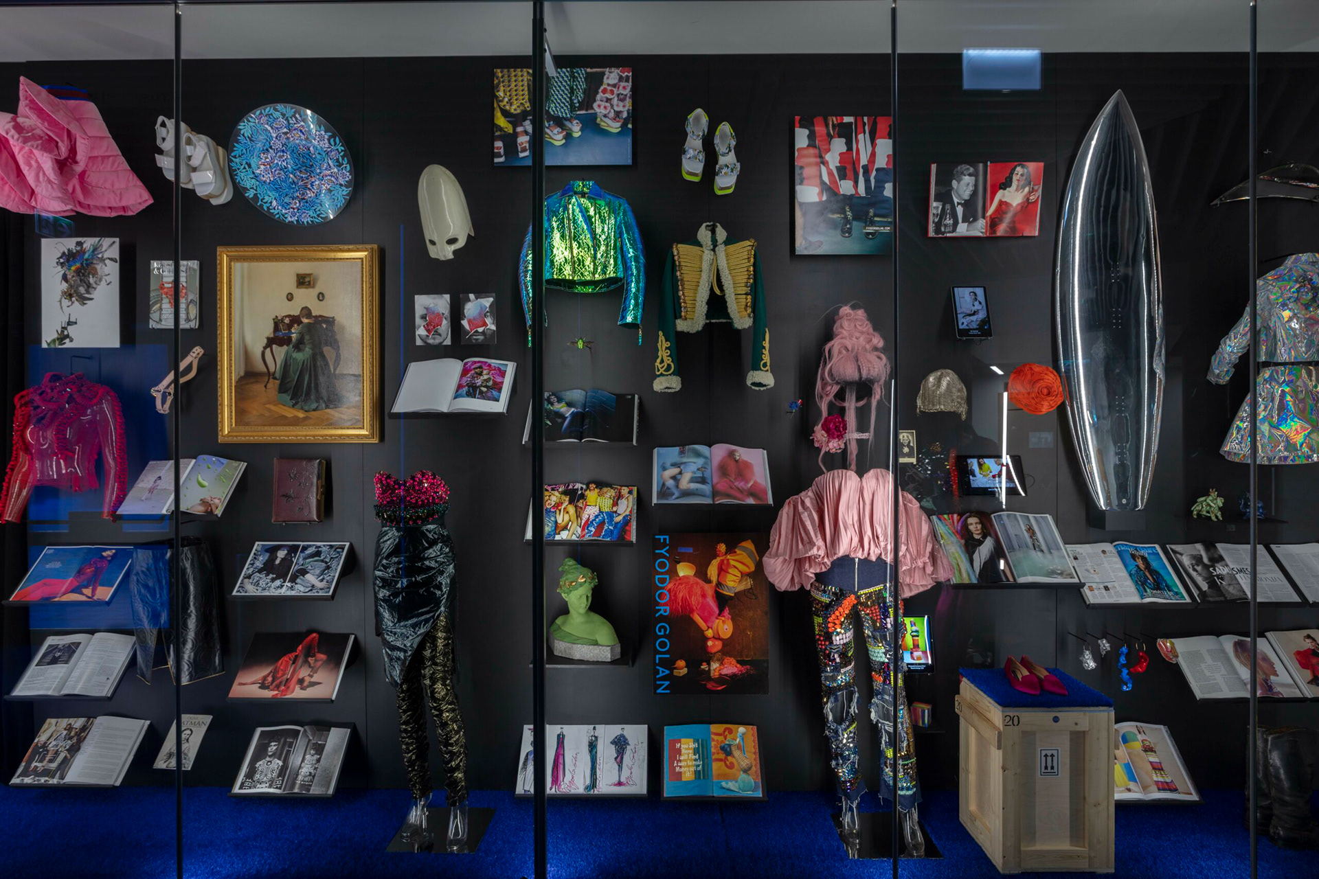 The exhibition featured a bold color palette with neon accents and contrasting tones, in line with Fyodor Golan’s visual philosophy. Modular display units and sculptural installation elements created a sense of collision between classical sculpture and avant-garde fashion, allowing visitors to become part of the exhibition itself. Graphic materials, posters, and informational elements harmoniously combined the heritage of classical sculpture with the brand’s energy and playfulness, while video zones and “pink lawn” relaxation areas offered visitors a chance to immerse themselves in the history of the brand’s shows, maintaining the exhibition’s dynamic rhythm. The spatial dramaturgy guided visitors from striking, impactful sculptures and garments worn by celebrities such as Madonna, Rihanna, and Jennifer Lopez, to quieter, more intimate moments, enabling a transition from spectacle to reflection.
